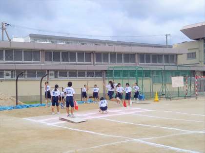 女子は、走り幅跳びをしています。実習生の授業も今日が最後です。
