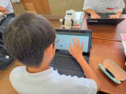 テストに向けてデジタルドリルを使い、各自がテスト範囲となっている分野の練習問題を行っています。全問正解すると「よくできました!」のスタンプがもらえます。