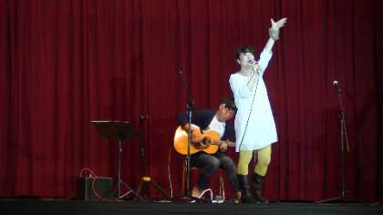 天然デンネンズの勝見さんより、ご自分の体験をもとに「いのちの大切さ」についてのお話と熱い想いを伝える歌を全校生徒へのメッセージとして唄っていただきました。