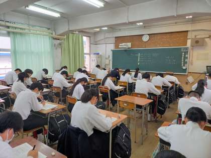 3年生は、進路懇談の重要な資料となる第3回の実力テストを受けています。今回の結果を参考に、16日(月)から進路懇談会が始まります。