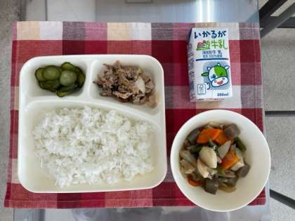 「ふきよせ」は、秋から冬の初めにかけて使われる料理の名前です。風にふきよせられた落ち葉を思わせるように、秋の味覚を盛り合わせた煮(に)もののことを、「ふきよせ煮(に)」といいます。紅葉や松葉をかたどった生ふや、秋が旬(しゅん)のくり、ぎんなん、いも、野菜、きのこなどが使われます。今日の給食では、さといも、れんこん、しめじを使っています。