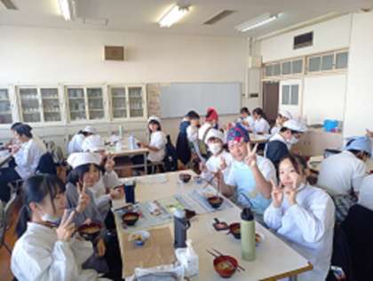完成した料理はなかなかの出来栄え。でも、給食を食べた後なので「お腹いっぱい」という声が聞かれました。