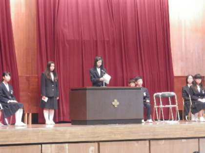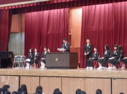 本日、後期生徒会役員選挙を行いました。2年生3名、1年生3名がそれぞれ会長、副会長、執行委員に立候補し、6限目に演説会を行い、信任投票が行われました。演説の内容では、「生徒の意見箱を活用する」など、よりよい美津島中学校を創るように努力したいと力強く述べていました。選挙結果は、明日の朝、発表されます。