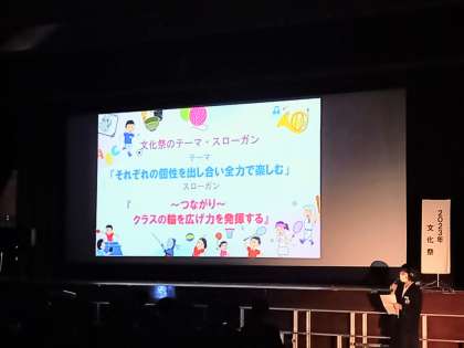 生徒会のオープニングで始まった今年の文化祭。まず初めは、生徒会から「スマホ」についてのこれまでの取組みについて説明がありました。国際クラブは、韓国・朝鮮の楽器の演奏を披露してくれました。
