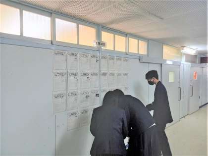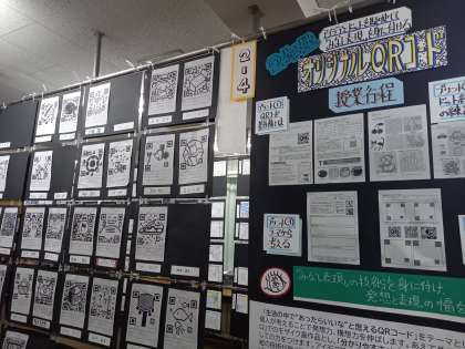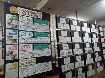 美術の授業作品と保健体育科の夏休みの課題の展示です。