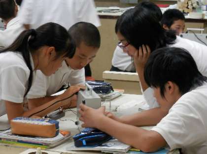 電流の流れによって、磁石の針の向きが変化することを確認し、右ねじの法則を学習しました。
