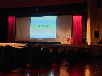 今年度の芸術鑑賞は「桂福点(かつらふくてん)さん」、「 豊来家幸輝(ほうらいやこうき)さん」をお迎えし、日本の伝統文化である落語・太神楽曲芸(だいかぐらきょくげい)鑑賞でした。