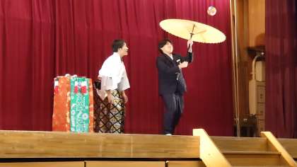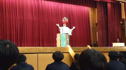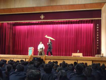 生徒も参加して太神楽曲芸を体験させてもらいました。