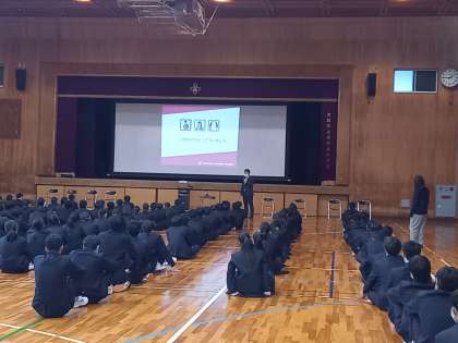 12月から始まる校長面接を前に3年生は、体育館で「制服着こなしセミナー」を受けました。