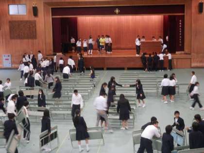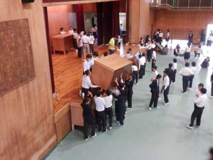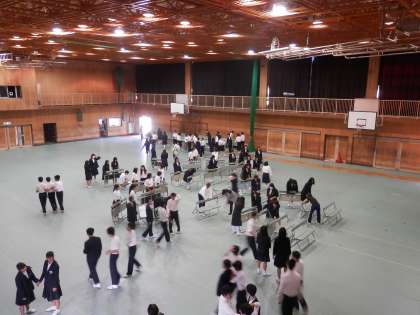 本日、午前中授業の後、午後より、本校2年生が文化祭(体育館)の会場準備を行いました。