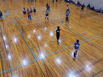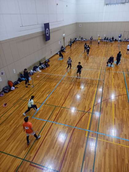 淀川区スポーツセンターで、区PTAバドミントン大会が開催されました。保護者と教員の混合チームで臨んだ美津島中学校は、午前中に1敗したものの午後からは全勝し準優勝しました。
