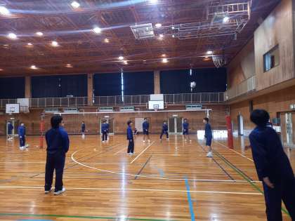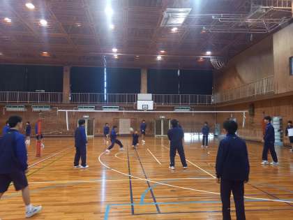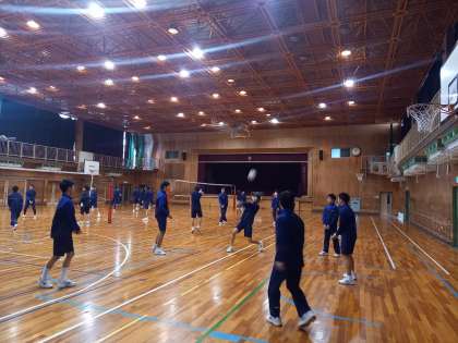 3年生男子は、体育館でバレーボールの試合をしています。