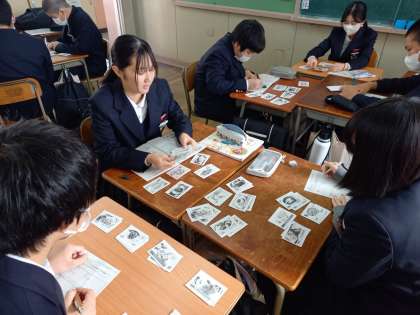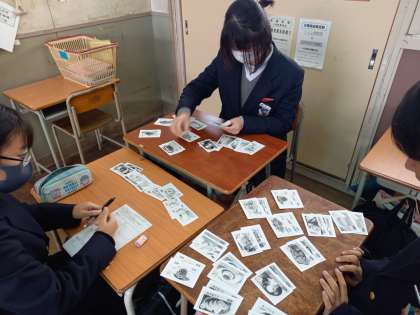 2年生の家庭科では、料理の名前が書かれたカードを神経衰弱で獲得し、獲得したカードを使い学習したことを生かして、彩りや栄養、カロリーを考えた献立作りに取り組みました。