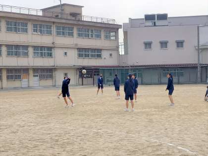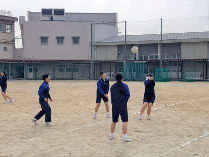 女子は、長距離走が終わって今日からバレーボール。今日は体育館が使用できなかったので、外でグループに分かれてアンダーパスの練習をしました。