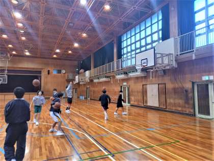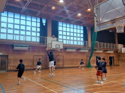男子バスケットボール部が、朝練でシュート練習を行っています。