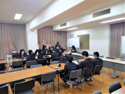 金曜日に行われる職業講話に向けての打ち合わせを行いました。講師の方への質問練習をしています。