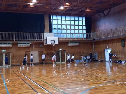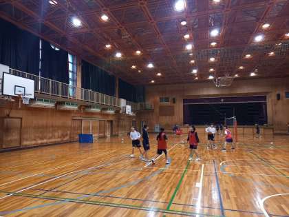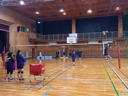 体育館では、バレーボール部とバスケットボール部が練習しています。