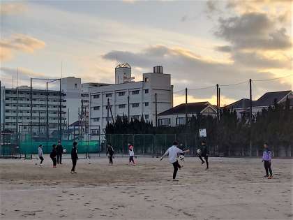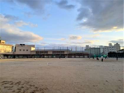夕方のグランドでは、サッカー部と野球部が練習をしています。