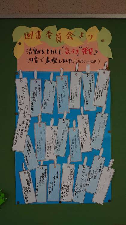 委員会活動を通して、「気づき」「発見」を17の音で表現しました。