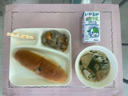 なにわうどんは、きつねうどんをイメージして作られています。三角形に切って、甘辛(あまから)く煮(に)たうすあげ、かまぼこ、はくさい、青ねぎが入ったうどんに、とろろこんぶを入れて食べます。きつねうどんは、大阪が発祥(はっしょう)といわれています。また、とろろこんぶも昔から大阪で作られていることから、大阪市の給食では「なにわうどん」と呼んでいます。