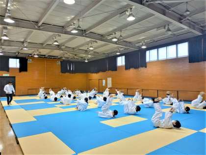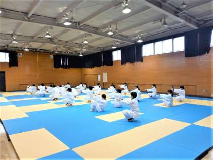もう一クラスは、格技室で柔道の後ろ受け身を練習しています。
