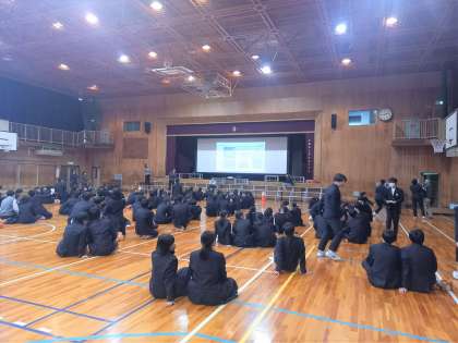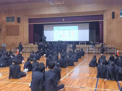 3年生は、午後体育館でレクリエーション活動を行いました。美津島中学校に通うのもあと少しとなりました。写真は、クイズ大会の様子です。