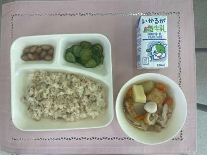 とら豆はいんげん豆の一種です。豆の模様が、濃い黄褐色(おうかっしょく)とうす茶色で、とらに似た模様があることから、この名前がつきました。炭水化物やたんぱく質、カルシウムのほかに、ビタミン類や腸の調子を整える食物繊維も含まれています。