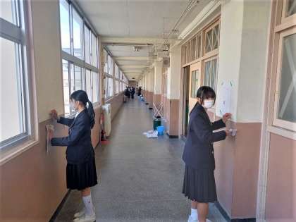 1年生は、4時間目大掃除を行いました。教室だけでなく、廊下の壁の黒ずみにエアコンのフィルターまで隅々まできれいにしました。