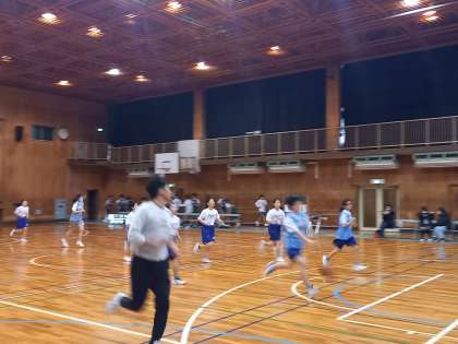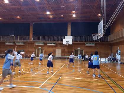 女子バスケ部の卒業生と現役チームの対戦のようすです。