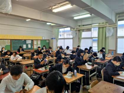 1年生では、朝の時間を利用して読書タイムを設けています。