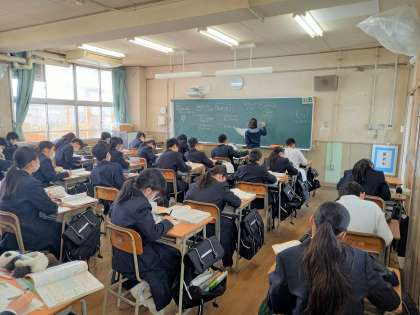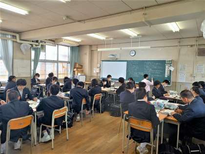 2年生の授業の様子です。授業がちょっと横道にそれてしまうのも、授業の楽しみの一つです。(上)国語(中)家庭(下)社会