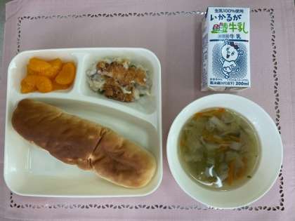 今日のマカロニグラタンは、鶏肉とたまねぎをいためたものにクリーム、小麦粉、牛乳、グリンピース、マカロニを加え、チーズとパン粉をふって焼いています。今日のマカロニグラタンには、牛乳・乳製品と小麦粉が使われています。
