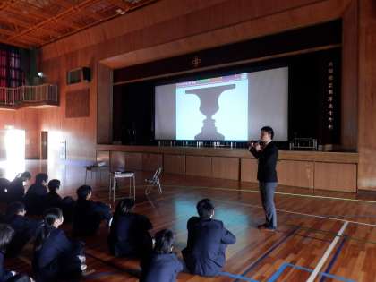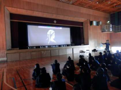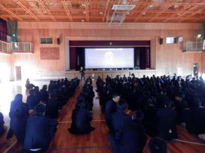 本日6限、3年生が学活の時間を利用して制服着こなし講座を実施しました。講師の方をお招きし、スライドを見ながら〈制服〉についての話をしていただきました。
