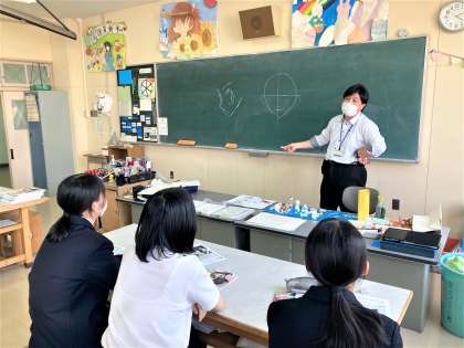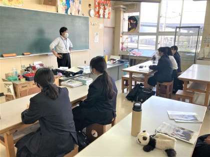 好文学園女子高校のマンガ・アニメーションコースの先生を講師に迎え、作品の描き方などについてお話を聞きました。生徒たちは、とても興味深くお話を聞いていました。