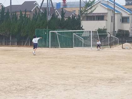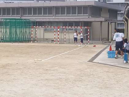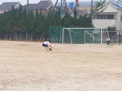 ソフトボールのゴロを捕球し一塁に送球するテストを行っています。