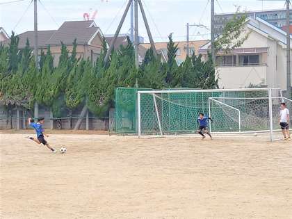 テスト前なので、サッカー部以外の部活動はお休みです。サッカー部は、府大会出場をかけた戦いが明日予定されていますのでグランドで練習を行っています。今日は、PKの練習をしていました。