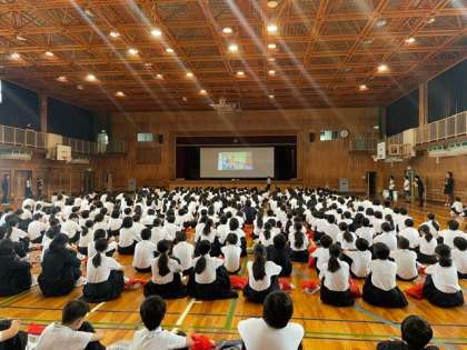以前にも言いましたが、美津島中学校はとても古く補修が必要な個所もたくさんあります。自分のものでないからといって雑に扱ったり、汚したり壊したりしないでください。大事に使っていても古い校舎なので壊れることもあります。そんなときは、先生に教えてください。今までの卒業生が大切に使って後輩に引き継いできた美津島中学校を、ぜひ君たちも大切に使って後輩に引き継いでいってほしいと思います。