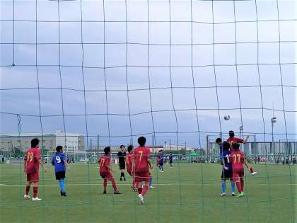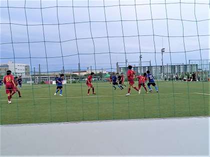 前半、相手チームのコーナーキックからの攻撃に1点を入れられ、前半は1−1で折り返しました。