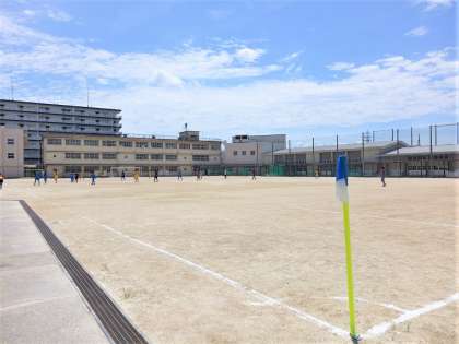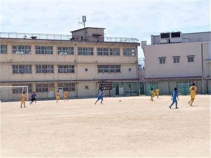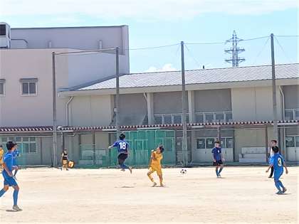 夏の日差しが地面に反射してまぶしい中、サッカー部は三国中学校と練習試合を行っています。