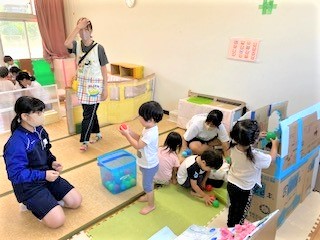 0歳〜5歳児のクラスにグループごとに分かれて保育体験を行いました。