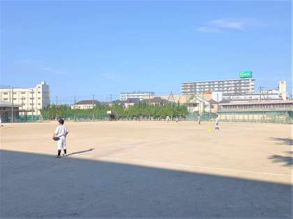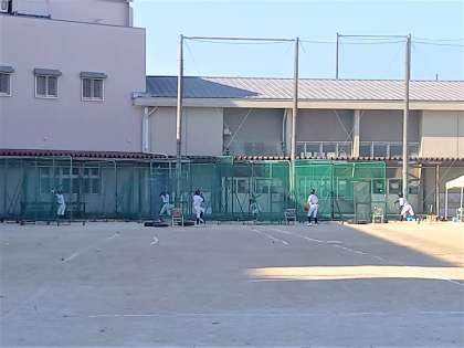 夏休みも半分が過ぎました。新チームとなった野球部は、朝早くからバッティング練習を行っています。