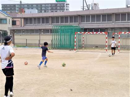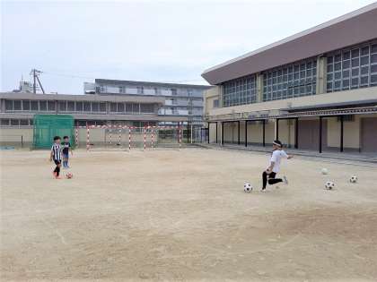 写真は、サッカー部の練習の様子です。小学生も練習に参加してくれています。