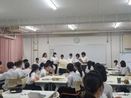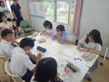 休憩をはさんで、グループごとに「学校をよりよくするために生徒会ができること」をテーマに話し合い、発表しました。