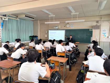 家庭科では、「食品の保存と食中毒の防止」について学習しています。お肉やお野菜などは、冷蔵庫のどこに保存するのがいいのか、家の冷蔵庫を思い出しながら回答していました。