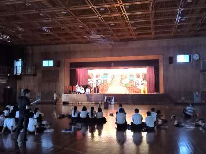 全校集会後、3年生は文化祭に向けた舞台練習を行っています。