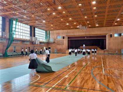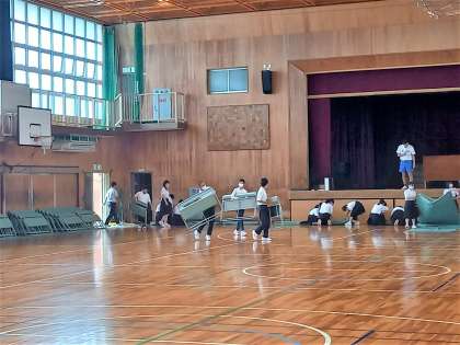 2年生が文化祭に向けた会場設営を行っています。