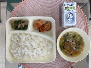 チリソースは、唐辛子(とうがらし)に塩やスパイスなどを合わせたソースのことです。給食では、しょうが汁、にんにく、砂糖、塩、こいくちしょうゆ、ケチャップ、トウバンジャンを混ぜ合わせて作っています。今日の給食では鶏肉に、チリソースで下味を付けて焼いています。