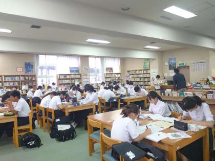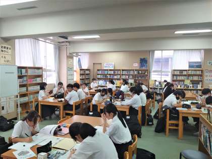 今日からテスト1週間前となりました。放課後自主学習会には、43人の生徒が来て、テスト範囲などを確認し合いながらワークやプリントに取り組んでいました。