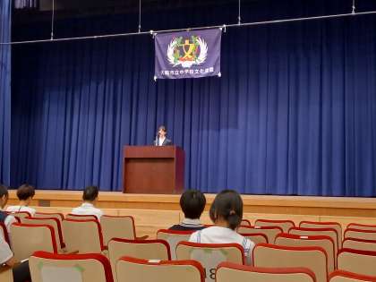 第35回大阪市長杯中学生英語暗唱大会に、本校2年生が参加しました。大勢の観客や審査員が見守る中「Aladdin」を発表しました。