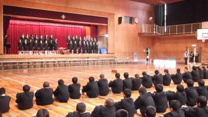 1年生—先週に引き続き体育館で音楽発表会の取り組みが行われ、全体合唱「マイバラード」を中心に練習しました。